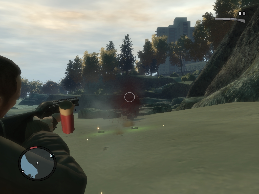 A fegyveres, illetve pusztakezes akcióval sem vagyok teljes mértékben elégedett. A bunyózást nehézkesnek éreztem, és elég sokáig kell ütni még egy vidéki örömlányt is, hogy sikerüljön megfektetni, és akkor még hol vagyunk a késsel hadonászó gengszterektől, akiket egyébként megfoszthatunk fegyverüktől, ami szimpatikus tervezői döntés. A lövöldözés valamivel jobban összeáll, de a túlcsorduló dinamizmus itt sem érhető tetten. A fedezékrendszer inkább jó, mint kiváló, és – a kameramozgatáshoz hasonlóan – szakszerű alkalmazása nem jön intuícióból. Mégis kénytelenek leszünk sűrűn használni, mert különben rövid úton vasbetonba harapunk, és a helyi kórházban kötünk ki. Nikóval ellentétben a civilek eléggé ragaszkodnak életükhöz, gyakran fordult elő, hogy nyaklövés után pihegtek egy kicsit, majd feltápászkodtak, de az sem volt példa nélküli, hogy 150-el telibekaptam őket, röppályára álltak, majd a szükségszerű landolás után a saját lábukon hagyták el a színteret. Habár, ha jobban belegondolunk, a hollywoodi filmekből ismeretes, hogy a ‘Nagy Vízen’ túl csak szuperhősök élnek, így mégsem olyan meglepőek a fentiek. A fegyverválasztékra egyébként nem lehet panaszunk, bár egzotikumot ezúttal nem markolhatunk meg, de kárpótolnak érte a földről összeszedhető, dorgálásra kiválóan alkalmas limlomok.