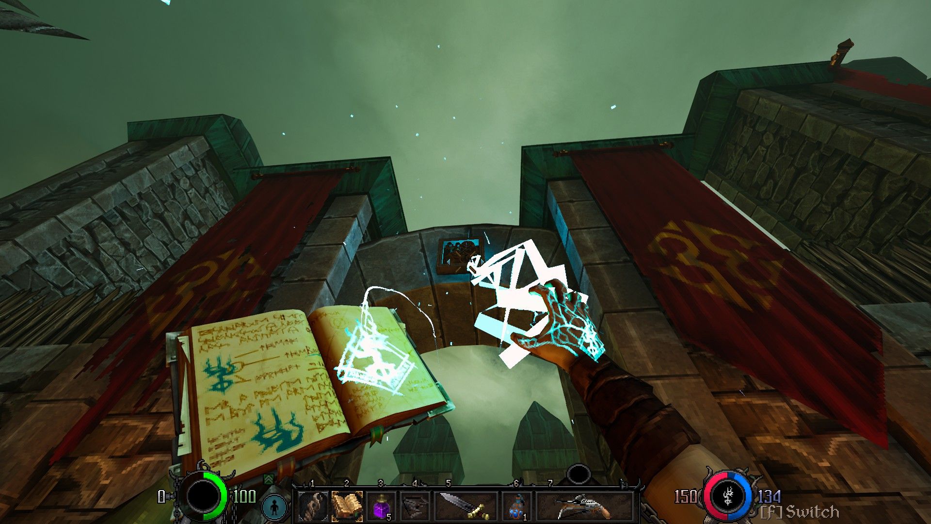 A Graven egy belső nézetes kardozós, nyilazós, varázsolós alkotás. Elsőre a Hexen jutott az eszembe a bot, a varázskönyv és a karra erősíthető nyílpuska láttán, ráadásul a környezetek is hasonlóak az ott megjelenőkhöz: középkoriasak, sok tömlöcös, erődítményes és templomos helyszínekkel. Vízből és mocsárból is van egy egészséges mennyiség, szóval a hangulat az teljes mértékben hozza a 90-es évek depresszívebb lövöldéinek minőségét, amit nagyon értékeltem.