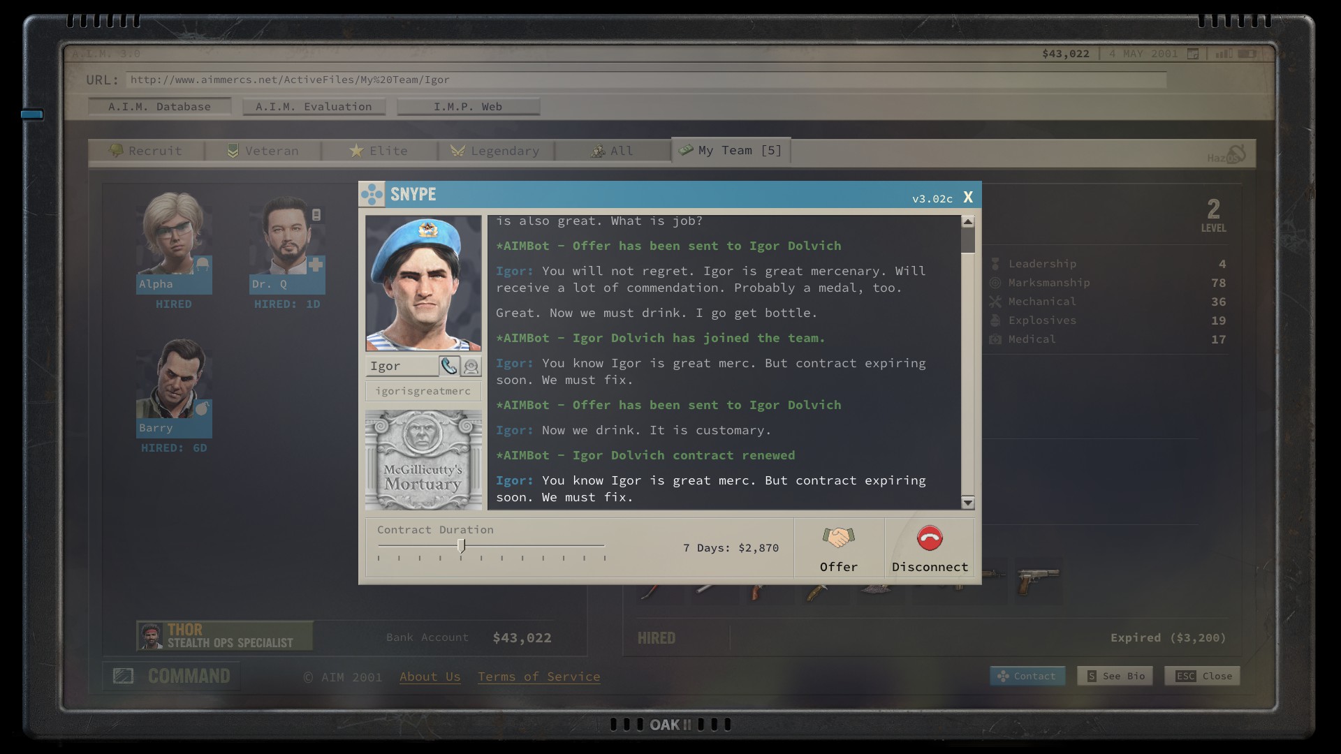Ha kicsit erősebbeknek tűnnek a rosszak, akkor mindig megéri lejátszani manuálisan a csatát, mert a rendszer nem taktikusan osztja ki a bekapott sebzéseket, hanem számok alapján, és simán elhullhat egy-egy zsoldosunk, míg, ha mi irányítottuk volna őket, meg sem sérült volna egyik sem. Persze, ha meghalna egy emberünk, még nem ért véget a móka, ugyanis bármikor felbérelhetünk újabbakat. A játék, egy katonát leszámítva (a fent említett, általunk létrehozott), felbérelt zsoldosokkal dolgozik, kik csupán egy hétig tartanak velünk, hacsak nem hosszabbítjuk meg a szerződésüket.