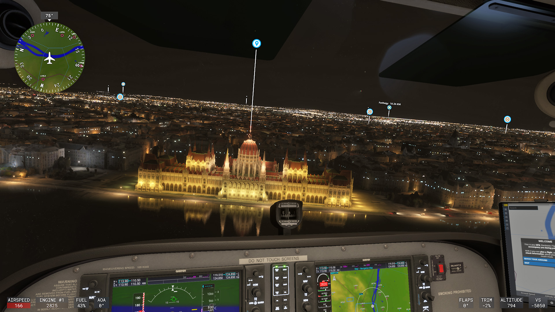 Már ez önmagában egy kimeríthetetlen élménybomba, főleg annak fényében, hogy repülhetünk akár realtime, tehát a jelenlegi évszaknak megfelelő és az éppen aktuális napszaknak és időjárási körülményeknek megfelelő környezetben, de magunk által beállított változók szerint is. Az éjszakai repülés például elképesztő New York vagy épp Budapest felett, de az én aggglomerációban található lakhelyem már kevésbé látványos éjjel kettőkor, így ezt általában nappali időszakra állítottam.