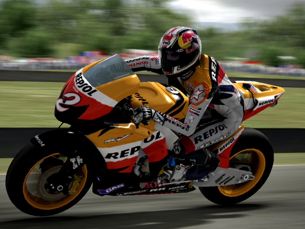 További problémáim is akadtak a produktummal, nem rejtem véka alá, így a lista folytatódik az ütközésálló ellenfelekkel. Fizikai kölcsönhatásba keveredni versenytársainkkal, nagyobb sebesség mellett kockázatos manővernek számít, mert ha valaki könnyen megborul, azok sajnos mi vagyunk, mialatt az irreálisan stabil riválisok szépen tovasurrannak, komoly előnyre tesznek szert. Nem korrekt megvalósítás, emellett nagy monoklit gyárt a realitás szeme alá. Vizuális megközelítésből sem jeleskedik a MotoGP 08, nagyrészt erősen középszerű képet mutat, az egyetlen említésre méltó effektus, az esővíztől tükröződő aszfalt, amit szó se róla, szépen megoldottak a Milestone grafikusai és a parádé ennyiben ki is fullad. A járgányok külsejét sem érheti különösebben lehúzó kritika, emellett viszont a pályák grafikai kivitelezése nem domborít valami nagyot. Több helyszínen is szembetűnő az egyhangú, kétdimenziós, pályaszéli sablonnövényzet síkbelisége, a szurkolókkal egyetemben, ez utóbbi megállapítás rájuk is vonatkozik. Egy jelen generációs erőgéptől komolyabb teljesítményt várunk el, nem adjuk alább az igényeket. Egyéb kozmetikai hibák is mutatkoznak, de legalább a sebesség érzését korrektül képes visszaadni, nem feltétlenül folyamatos frame rate mellett, de valóban lejön a látványról a kilométerórán megjelenő sebességérték, ez pedig nagy pozitívum, amiből nem jutott rogyasztó mennyiség az idei felvonásba.