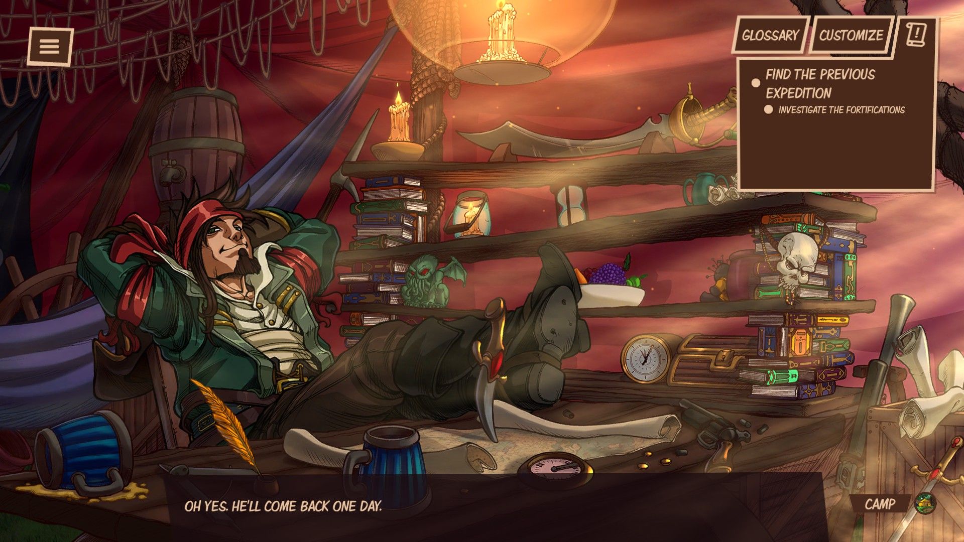 Összesen három központi helyszínhez lesz szerencsénk. Ezek között szabadon utazhatunk, bár igazából a legelső ilyen hely, a táborunk, az, ami rendelkezik bárminemű jelentőséggel. Itt ugyanis egy szakács segítségével étkeket, egy kalózkapitánynak hála pedig bombákat gyárthatunk. Ezekre inkább a legmagasabb nehézségi szinten lesz igazán szükségünk, de normál fokon is találkoztam egy-két helyzettel, ahol kapóra jöttek ezek a segédeszközök.