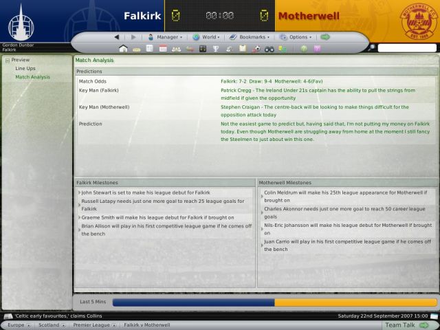 A program adatbázisa mintegy 300.000 (!) játékos és edző adatait tartalmazza. Betekinthetünk bármely meccsbe, amely segítségként szolgálhat a taktika meghatározásakor, és így már nem csupán a megfigyelők véleményét kell figyelembe vennünk egy-egy döntés előtt. Ahogy azt már megszokhattuk, hatalmas stratégiai arzenál áll rendelkezésünkre, gyakorlatilag minden térre kiterjedően meghatározhatjuk játékosaink pályán való viselkedését. óriási ötlet például a játékban, ahogyan a pálya minősége kihat a teljesítményére. Ha a hazaitól minőségében és/vagy méretében eltérő pályára küldjük ki játékosunkat, nem fog tudni 100 százalékosan teljesíteni. Ha belegondolunk, ebben van is realitás, elvégre is egy világsztár csapat is bajosan tudna tili-tolizni egy vakondtúrásos falusi focipályán, a helyi aranylábúak viszont nyílván jobban hozzá vannak szokva az efféle állapotokhoz. Ez utóbbi szélsőséges példával is arra szerettem volna rávilágítani, mennyire összetett és minden részletre kiterjedő játékról van szó, soha eszembe nem jutott volna fejlesztőként ilyen "apróságokra" is odafigyelni.