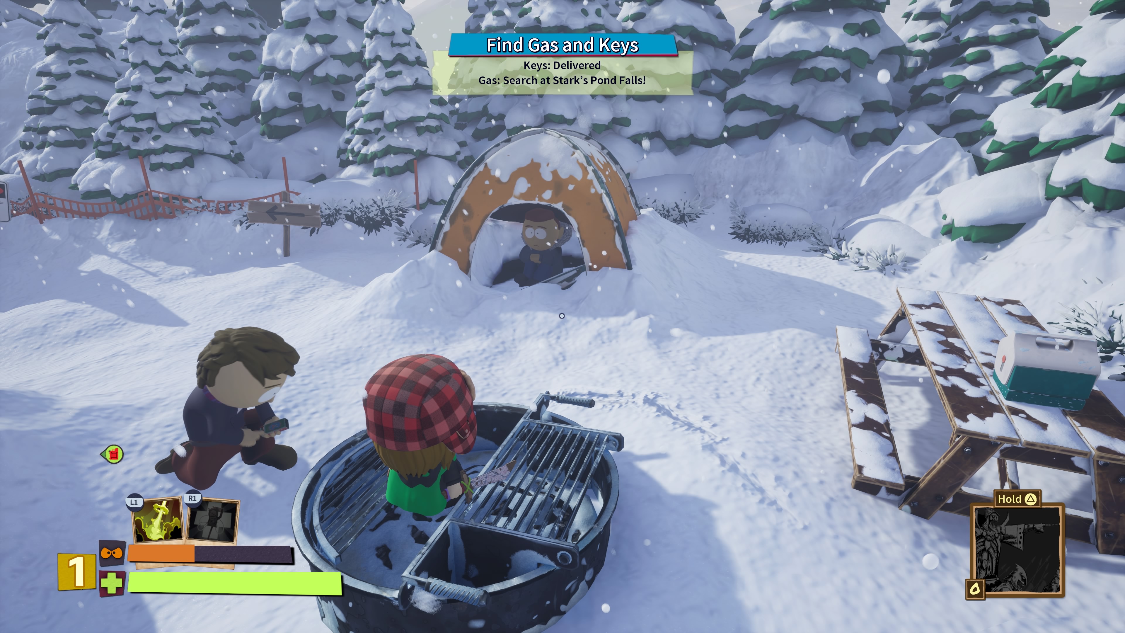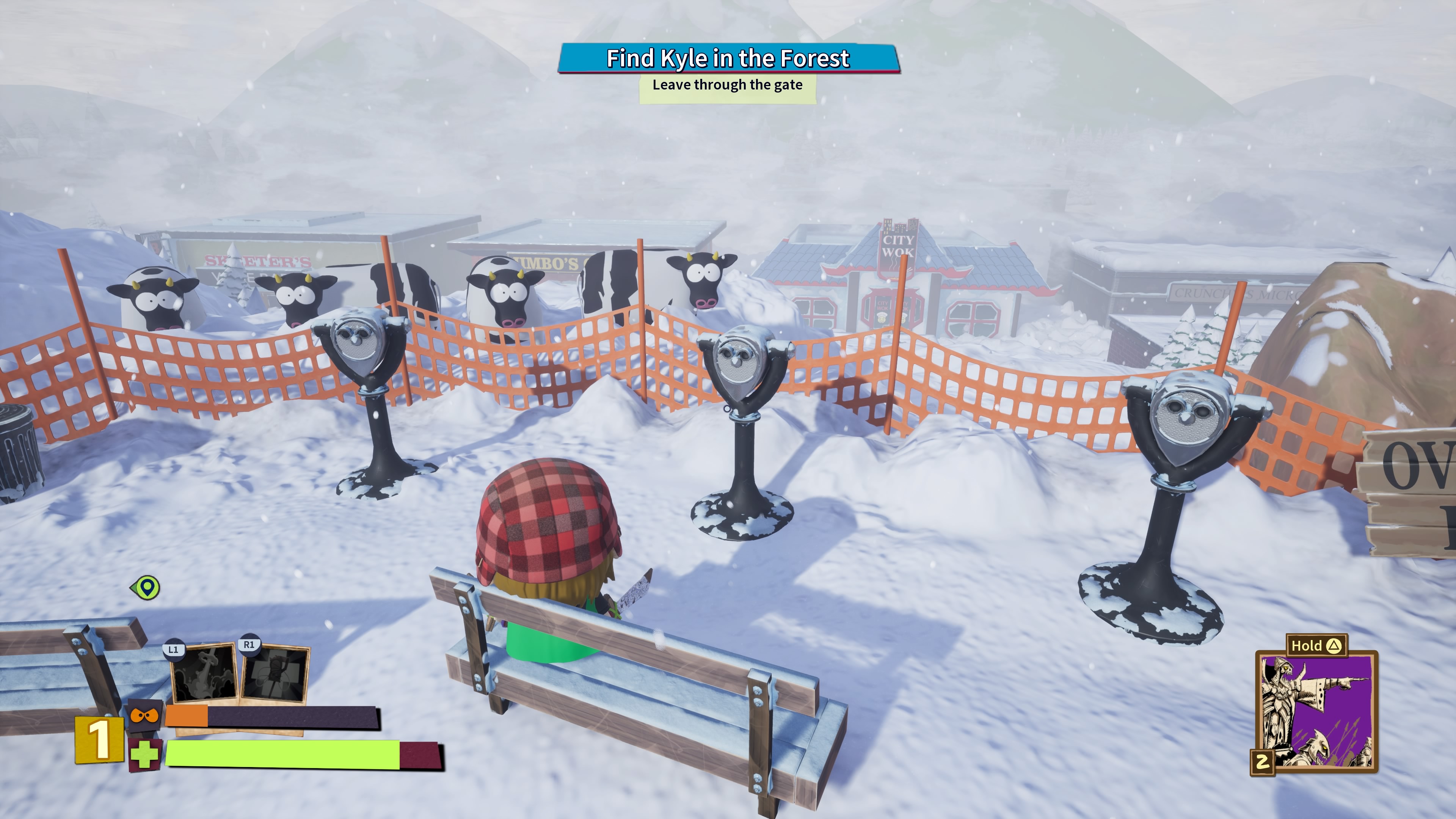 Alapjáraton három közelharci és szintén ugyanennyi távolsági fegyvert kapunk, amelyek mindegyike más-más módon segít minket az ellenséges gyerekek legyőzésében. Csak azért nem térek ki a többi ellenfélre, mert én is bekapcsoltam magamon a spoiler szűrőt, mivel más esetben szerintem átnyúlnátok a monitoron és én is Kenny sorsára jutnék.