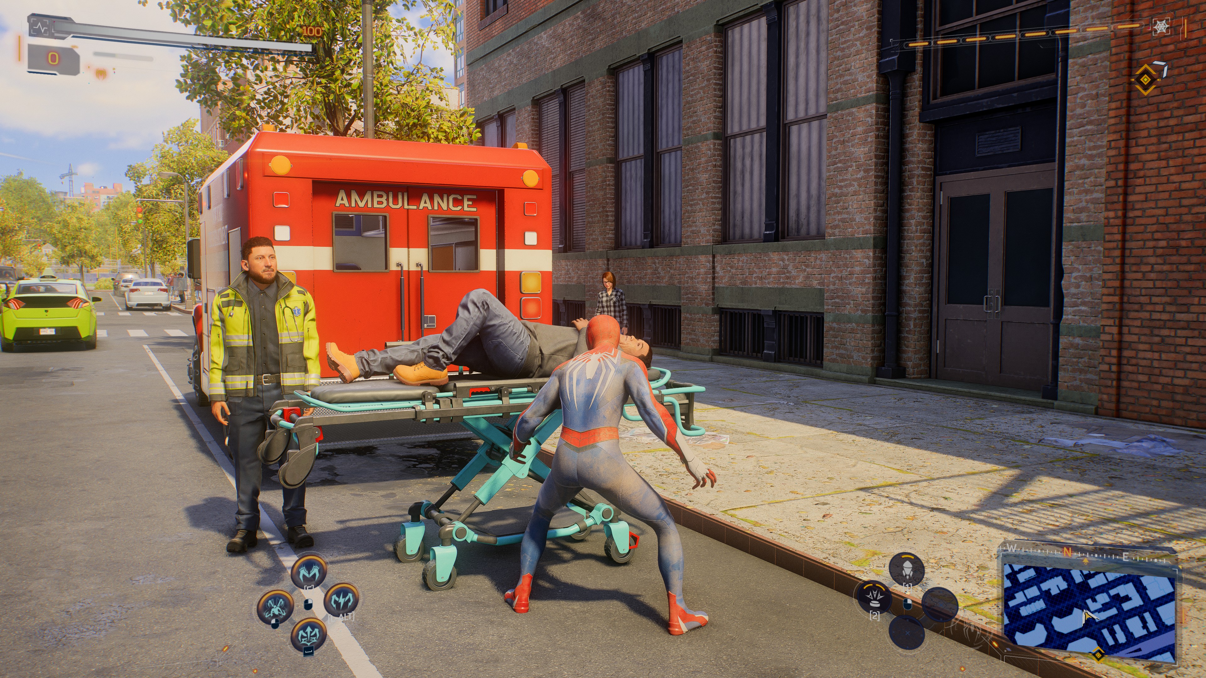 Azonban, ha már az optimalizálatlanságot elővettem, lássuk, hogy mi más hibával szembesültem a teszt során. Találkoztam villódzó textúrákkal, árnyékossá, feketéssé váló szemfehérje színnel (például Peter-nél és Kraven-nél), a környezetben kissé elsüllyedt járókelőkkel, illetve a vidámparkos részen több bug is befigyelt, mikor Peter-rel megálltam egy padnál, vagy korlátnál. Ilyenkor Harry és MJ néha csak ide-oda rohangáltak, nem csatlakoztak hozzám, így nem is tudtam elszabadulni ezekről a helyekről (a rendszer nem adta be az ESC opciót), ami miatt úgynevezett „Soft-lock”-ot szenvedtem el, és újra kellett az állásomat tölteni.