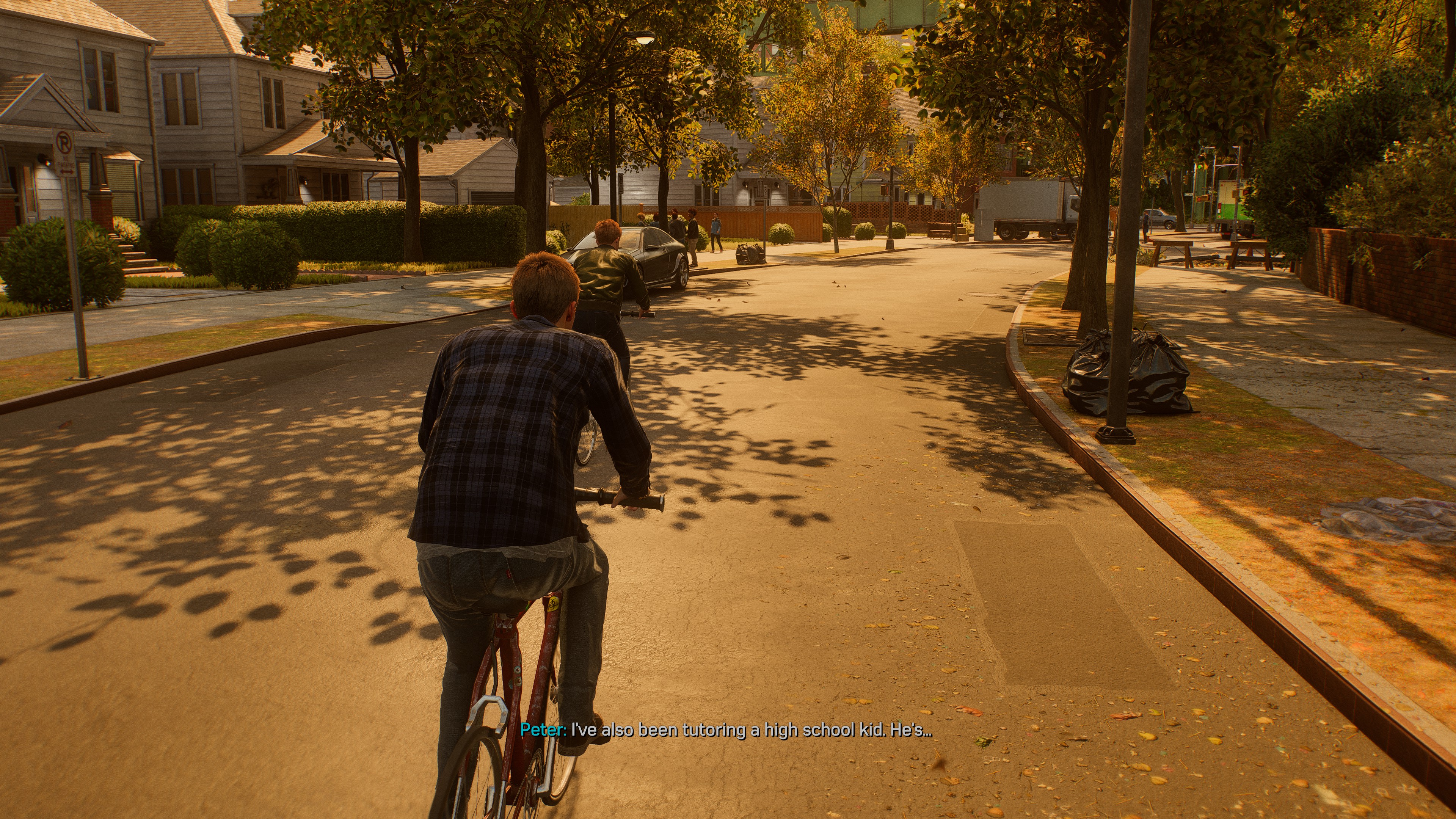 A történet több ágon halad, és ugyan Peter-ék sztorija eleinte engem jobban megfogott, hisz Harry-nek a titokzatos gyógyulása mögött biztos van valami disznóság, Miles sztorija is előbb-utóbb visszatér a saját kis mellékvágányából (vagyis az egyetemi jelentkezés „nagy” dilemmájából), hogy egy fantasztikus egésszé álljon össze a mese. Továbbá a kiegészítő küldetések igazán Pókemberesre sikeredtek, mint például gimnazista diákok problémáinak a megoldása és fényképek készítése. Mondjuk ezeknél az abszurditás eléggé hajmeresztő szinteket is elért (például egy báli párfelkérésnél a technika összekrepálja magát minden fordulónál és nekünk kell megoldani az összes technikai bökkenőt), de legalább relatíve szórakoztatóak voltak.
