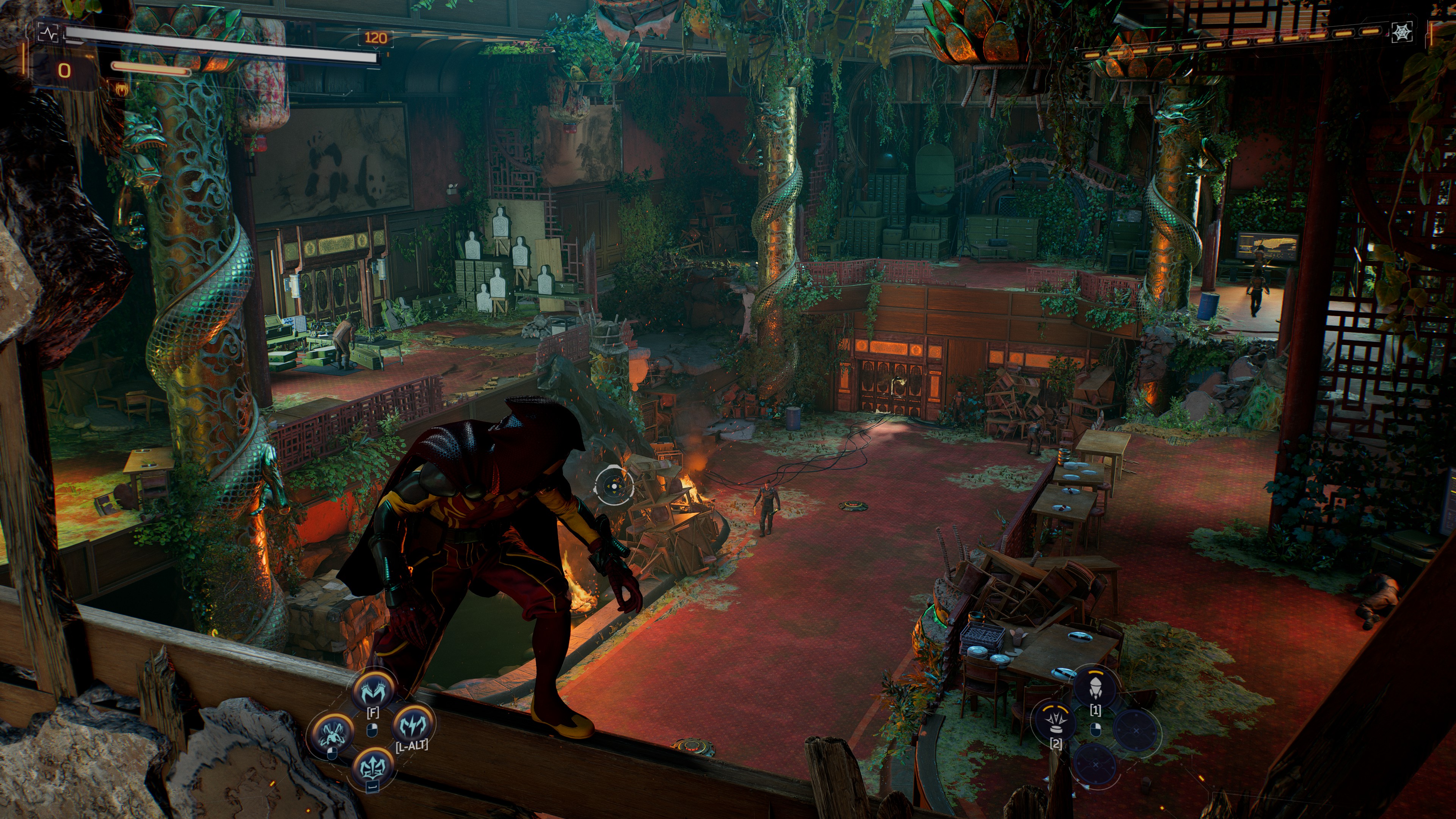 A negatív tapasztalataimat pedig a harccal zárnám, ha már az elején beharangoztam. A billentyűzet-egér kombó kissé kényelmetlennek érződő gombelosztást kapott, melynek a megszokása és kitanulása nem két perces meló. A speciális mozdulatokat a jobb rágcsálógomb nyomvartartása közben lehet előidézni mindig egy másik billentyű lefejelésével (bal egérgomb, SPACE, ALT, F, 1, 2, 3, 4). Kicsit kacifántos, főleg, hogy közben ide-oda ugrálnánk pók úrral, és a zárójelben felsorolt billentyűket önmagukban is használnánk, úgyhogy a betanulási/megszokási idő hosszabb lesz, ha nem jövünk azonnal az elődöktől. És még talán akkor is.