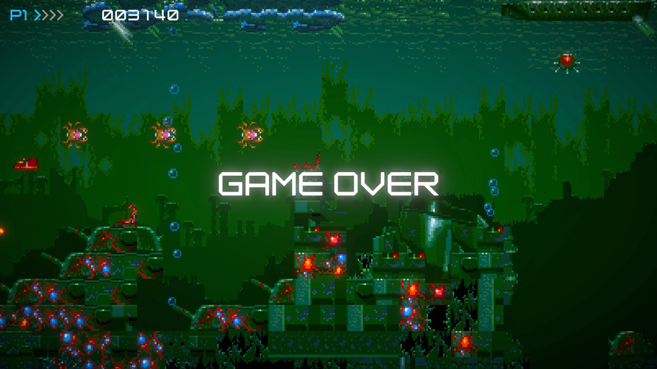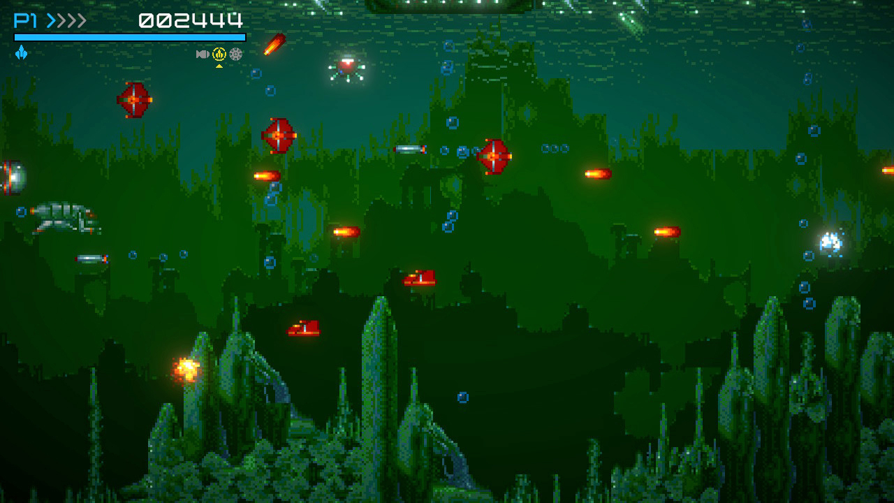 Adott ugyanis egy nem megszokott shoot em up környezet: a megszokott űr- vagy légi csaták helyett ezúttal az óceán mélyére merülünk, ahol idegen megszállók hadseregei várnak ránk, és az első másodperctől zúdítják ránk torpedóikat, aknáikat, tűzgolyóikat és egyéb lövedékeiket. Ez persze még nem lenne annyira különleges, az viszont sokkal inkább az, hogy egy, azaz EGY életünk van, és ha nekimegyünk bárminek, akkor vége, irány a kezdőképernyő.