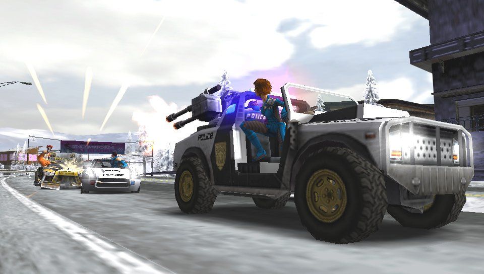 Mindezt megfejelendő, a készítők implementáltak egy karakter/eszközfejlesztési opciót is, melyben négy különböző tulajdonság építhető magasabb szintre. A térképen egy állandó pont lesz a laboratórium, ahová betérve lehetünk gyorsabbak erősebbek és hatékonyabbak, persze nem osztogatják csak úgy ingyen az upgrade-eket. Fejlődik a közelharci készségünk, csökken a fegyverek újratöltési ideje, nő a járműveink gyorsulása, végsebessége, valamint "döngölési" képessége. Ez utóbbit az ellenséges golyóálló, zárt kabinú járgányok ellen használhatjuk fel hatékonyan, mivel más opciónk ilyenkor nem marad. Addig döngöljük jobbról-balról amíg, az rommá nem törik, akárcsak anno a Chase H.Q.-ban tettük.