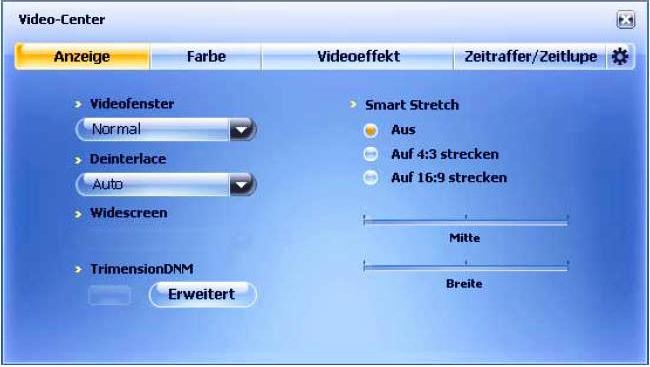 A videó központ segítségével akár a lejátszás alatt is módosítható a megjelenített kép. Olyan dolgok megváltoztatására lehet itt szükség, mint a megjelenített kép aránya, a megjelenítéshez használt színrendszer típusa. A videók képarány általában 4:3, vagy 16:9. De egyéni ízléstől is függ, hogy az ember mit szeret jobban, a tökéletes képet, vagy a képernyő két szélén futó csíkot.