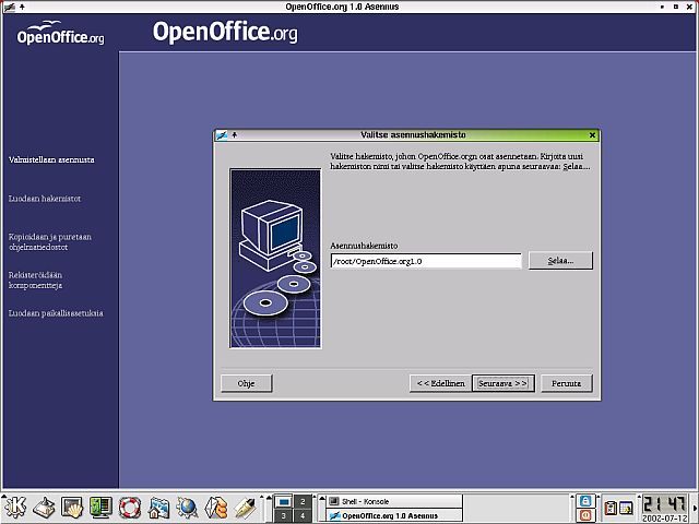 Az egy felhasználós telepítés során a egy számítógépre, egy adott felhasználó számára települ az irodai programcsomag. Ezt a módot még otthoni számítógép esetén is elsősorban a Windows operációs rendszer alatt dolgozók számára ajánlják. A telepítést igen jó magyarázó szöveg vezeti végig, erre hagyatkozva biztos a siker. Ha több felhasználó is fog dolgozni az OpenOffice-al, vagy hálózati számítógépre települ, akkor a több felhasználós telepítést alkalmazzuk. Első lépésben rendszerszintű hozzáférési joggal kell bejelentkeznünk a célszámítógépre, vagy a hálózati számítógépre. Az OpenOffice-t olyan könyvtárba telepítsük, amelyre a felhasználóknak olvasási és végrehajtási joguk van. A Linux grafikus felületén a telepítéskor a ./setup –net parancsot, ha karakteres Linux felületet használunk az ./install – help parancsot alkalmazzuk. A második lépés elején arról kell meggyőződnünk, hogy Linux alatt az .sversionc fájl megvan-e a felhasználó saját könyvtárában. Ebben a fájlban találjuk az OpenOffice elérési útját és verziószámát. Ha egy régebbi változat is van a gépen, azt a továbbiakban el kell távolítani. A végleges telepítéshez a saját felhasználói nevünkkel lépjünk be a rendszerbe. Az X Window grafikus felület elindítása után nyissunk meg egy terminálablakot, amellyel az első lépcsőben létrehozott telepítő könyvtárba lépünk be. Innét a ./setup paranccsal indítható a telepítés. A munkaállomásra, felhasználói felületre történő telepítés további részét az egyedi telepítéshez hasonlóan igen jó segítség vezetésével tudjuk elvégezni.