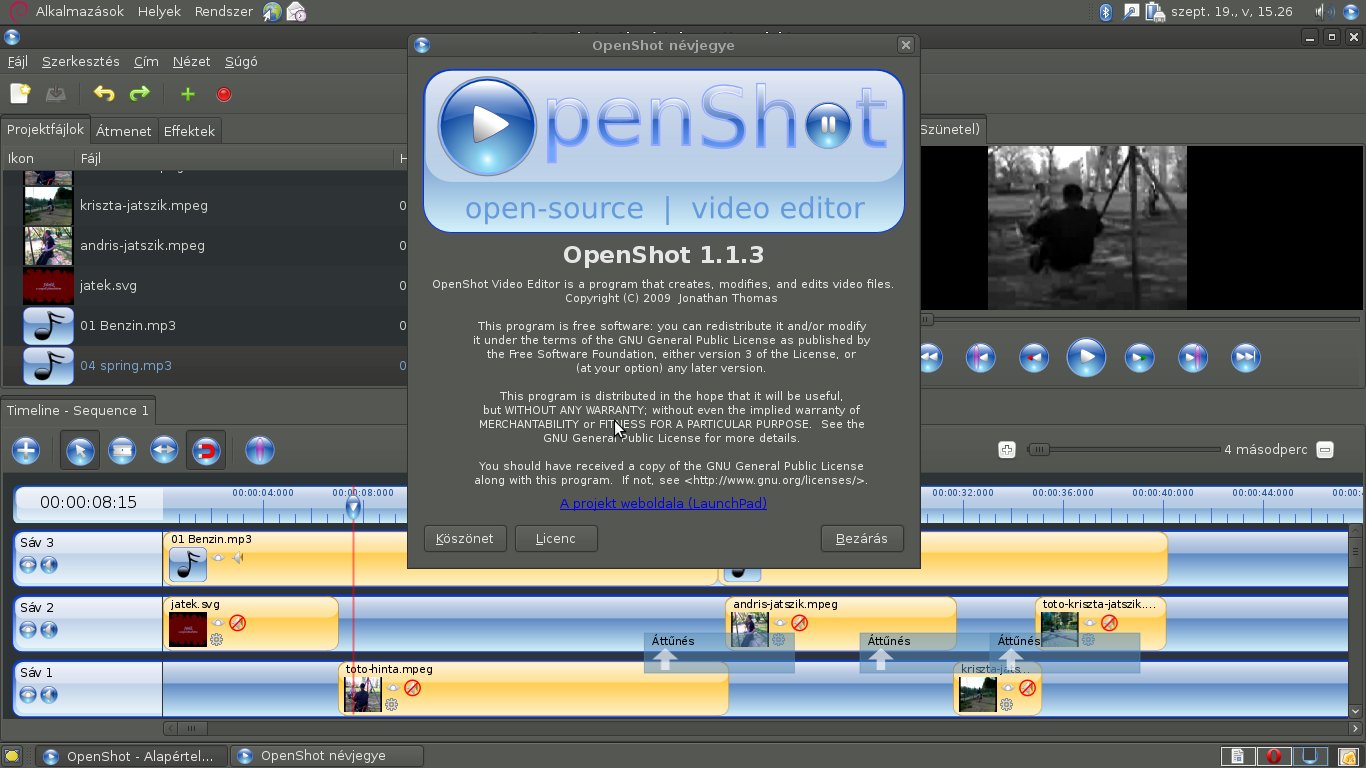 15 éve, 3 hónapja és 3 heteÉn mostanában épp a Pitivit nézegettem, az Openshotot eddig nem próbáltam. Pedig jobbnak tűnik… Vizsgálom.🙂